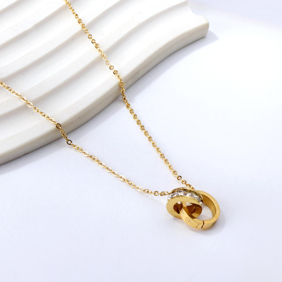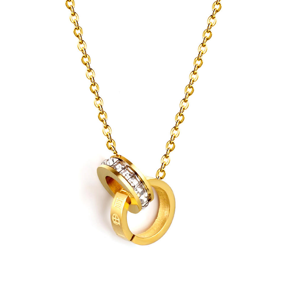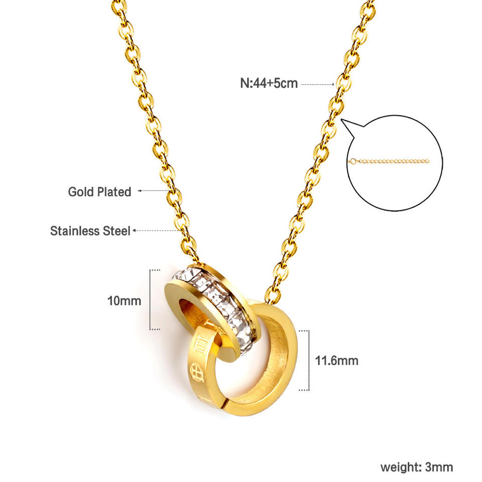 สร้อยคอไทเทเนียมสไตล์ยุโรปอเมริกัน จี้วงกลมคู่รูปทรงเรขาคณิต สำหรับผู้หญิง ของขวัญสำหรับใส่กับเสื้อสเวตเตอร์