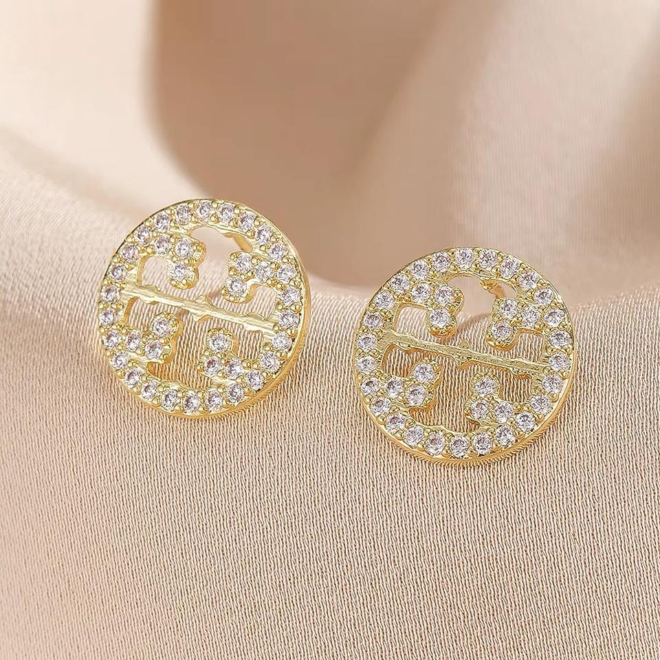 ต่างหูทองเหลืองประดับคริสตัลหลากสีสไตล์วินเทจยุโรปอเมริกันสุดฮิตสำหรับผู้หญิง