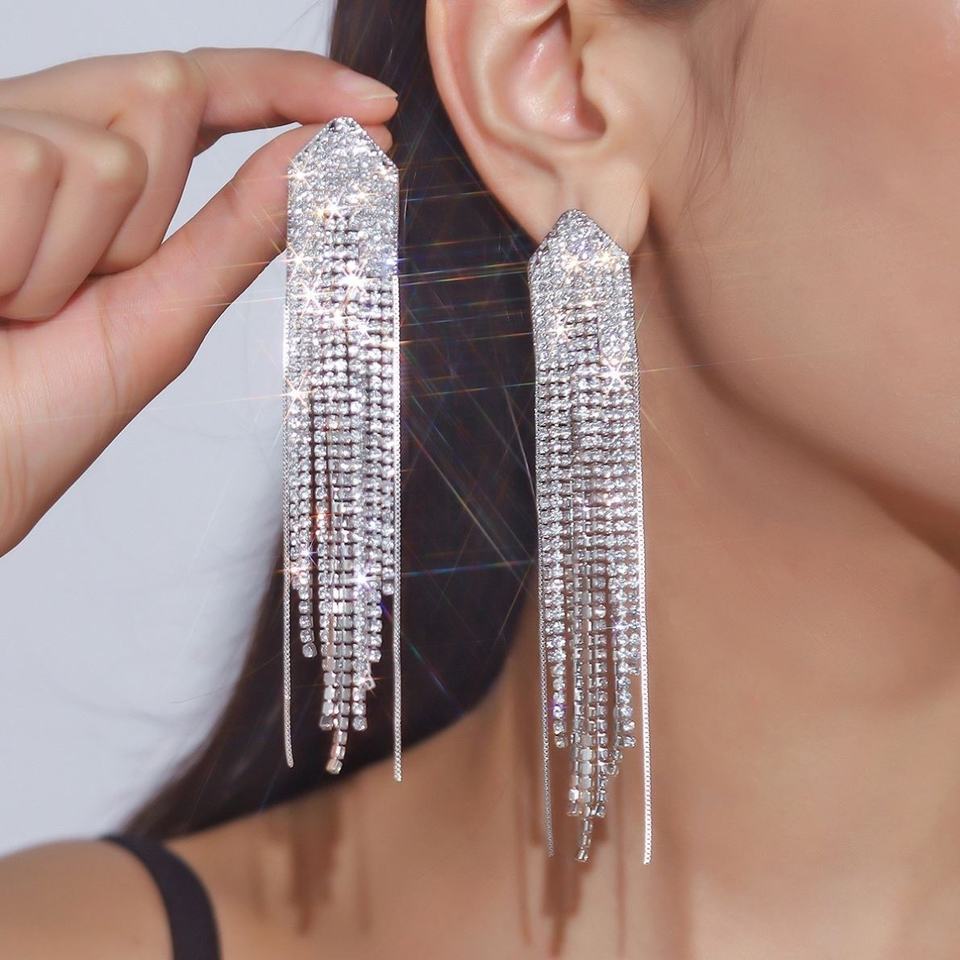 ต่างหูระย้าประดับคริสตัลวิบวับ สไตล์ยุโรปอเมริกัน แฟชั่นยอดนิยมบนอินเทอร์เน็ต สไตล์ญี่ปุ่นเกาหลี