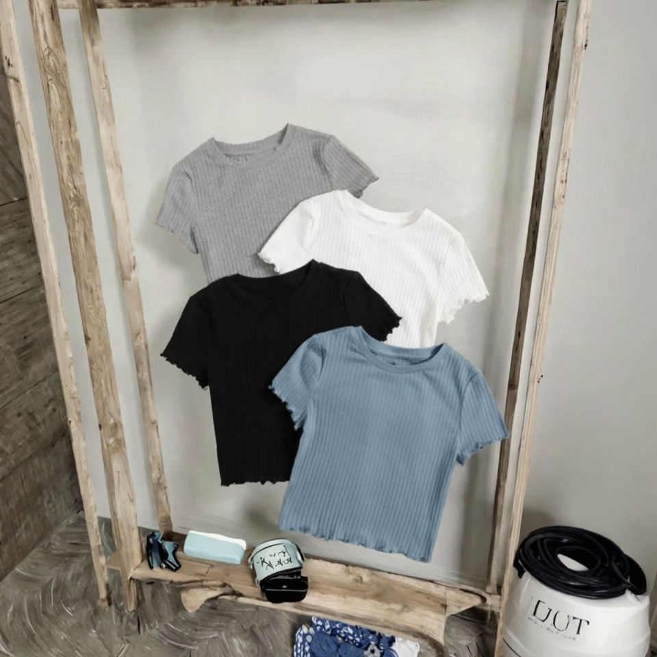 เสื้อยืดโอเวอร์ไซส์ผ้าฝ้ายผสมสแปนเด็กซ์ 190 กรัม แบรนด์ยุโรปอเมริกันสุดฮิตสำหรับผู้หญิง คุณภาพสูง ระบายอากาศได้ดี ตกแต่งหมุดสั้นๆ เหมาะสำหรับฤดูร้อน