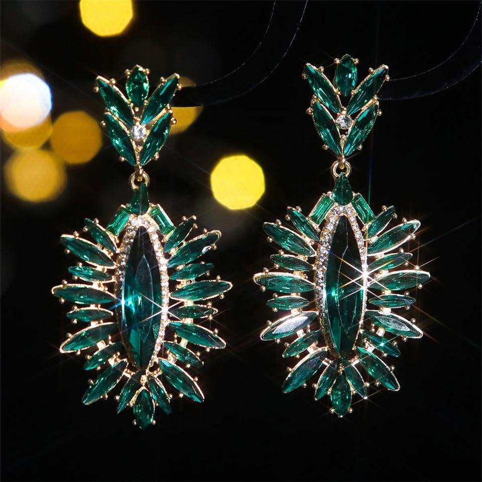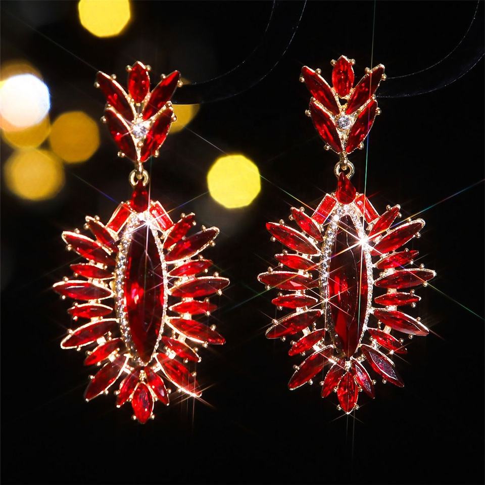 ต่างหูคริสตัลทรงหยดน้ำสไตล์ยุโรปอเมริกัน ดีไซน์ตาปีศาจสุดอลังการ ทำจากโลหะผสมสีทอง ลายเรขาคณิต เหมาะสำหรับงานปาร์ตี้ของผู้หญิง
