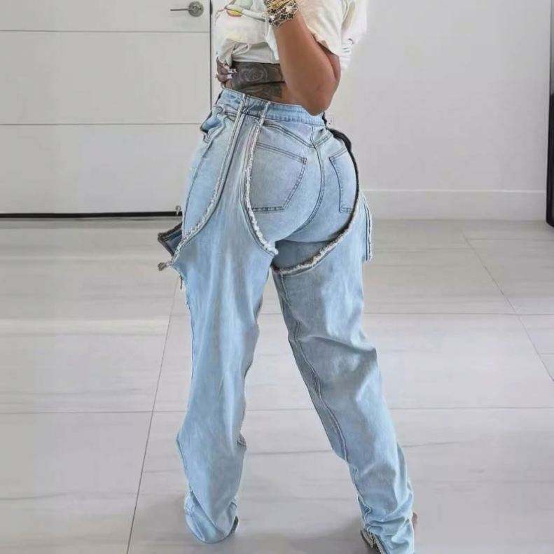 กางเกงยีนส์ผ้ายืดแบบไขว้ขอบมีซิปแบบย้อนยุคสไตล์ลำลองวินเทจสไตล์ยุโรปอเมริกันฤดูร้อน