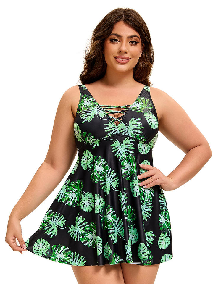 ชุดว่ายน้ำออกกำลังกายระบายอากาศได้ดีเป็นมิตรกับสิ่งแวดล้อมของผู้หญิงสไตล์ยุโรปอเมริกันมีสไตล์ลายสีพื้นพิมพ์ลายแบบเว้าหลังดีไซน์พลัสไซส์