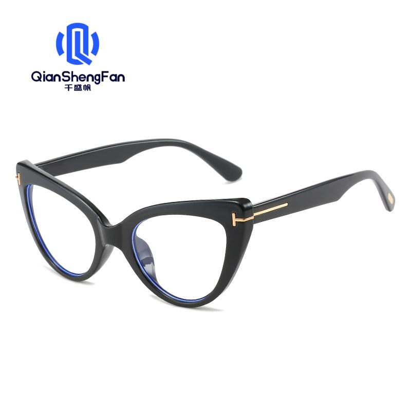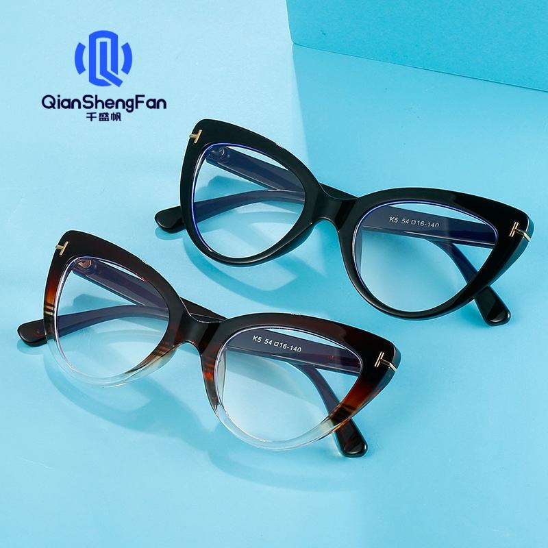 แว่นตาแฟชั่นทรงแคทอายกรอบใหญ่สไตล์ยุโรป-อเมริกัน สำหรับผู้หญิง ดีไซน์ทันสมัย ป้องกันแสงสีฟ้า เลนส์แบน นำเข้า