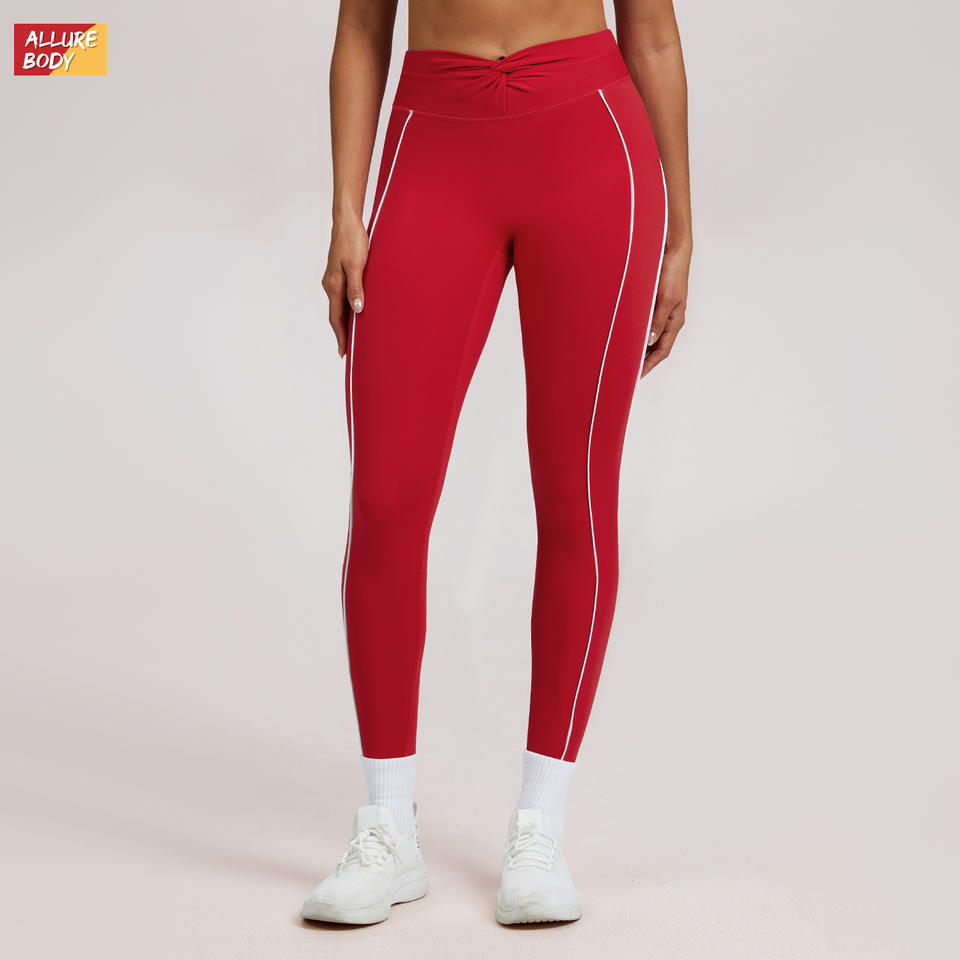 กางเกงโยคะเอวสูงสำหรับผู้หญิงสไตล์ยุโรปอเมริกัน สีแดง ผ้าไนลอนผสมสแปนเด็กซ์ กระชับรูปร่าง เหมาะสำหรับออกกำลังกาย วิ่ง และเล่นกีฬา