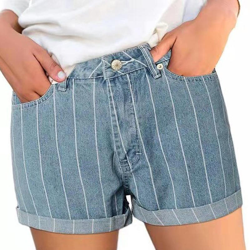 กางเกงขาสั้นผ้ายีนส์ลายทางสไตล์ยุโรปสำหรับผู้หญิงอเมริกันแฟชั่นอเนกประสงค์ขายดีสำหรับการค้าต่างประเทศ