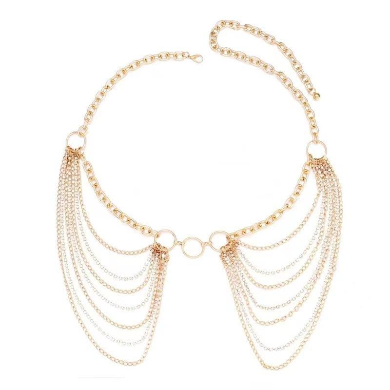 โซ่คาดเอวโลหะหลายชั้นสไตล์ยุโรปและอเมริกา ประดับพู่ห้อยเพชรเทียม สำหรับผู้หญิง แฟชั่นงานปาร์ตี้