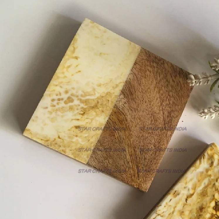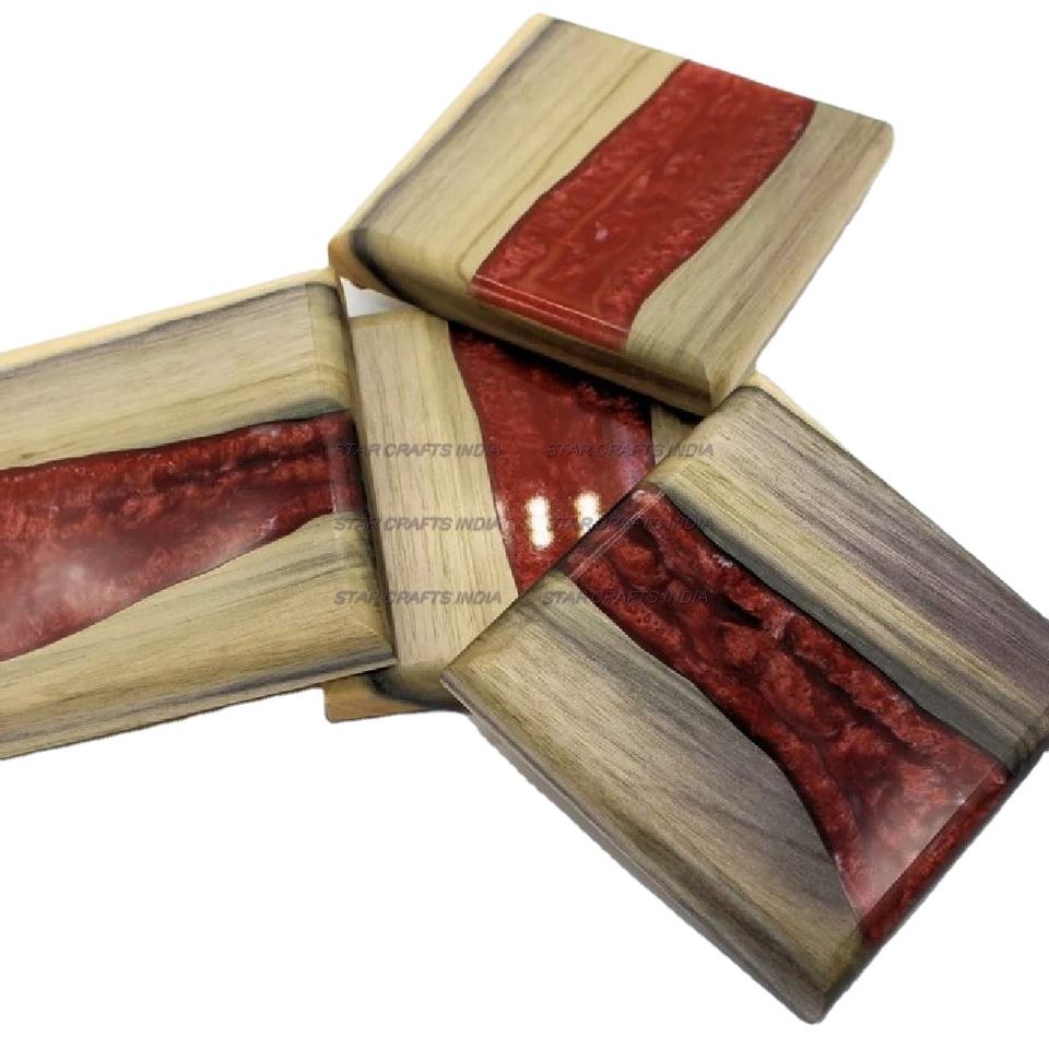 ชุดจานรองแก้วไม้และเรซินทรงสี่เหลี่ยมสไตล์ยุโรปและอเมริกาสำหรับบ้านและเครื่องครัวที่รองแก้วสไตล์ใหม่สั่งทำ