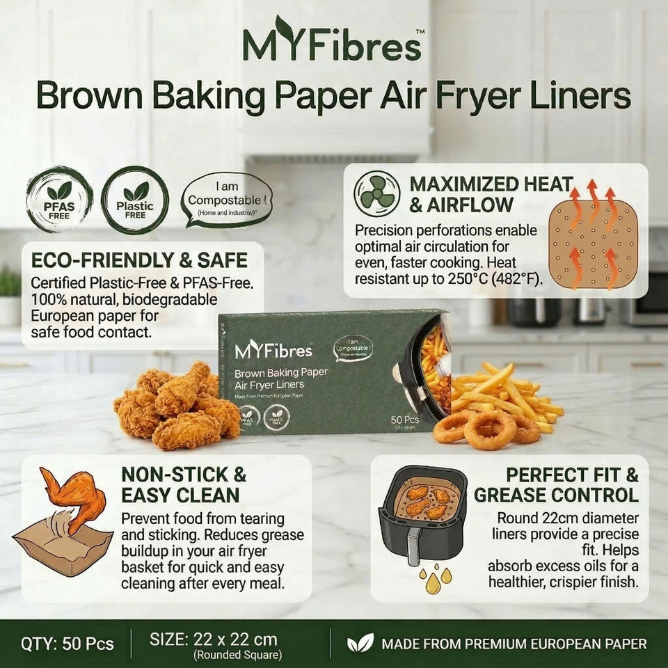 กระดาษรองอบยุโรปสำหรับหม้อทอดไร้น้ำมัน ขนาด 22 x 22 ซม. 135 ชิ้น สำหรับทอด อบ ปรุงอาหาร กระดาษรองอบแบบไม่ติดกระทะ