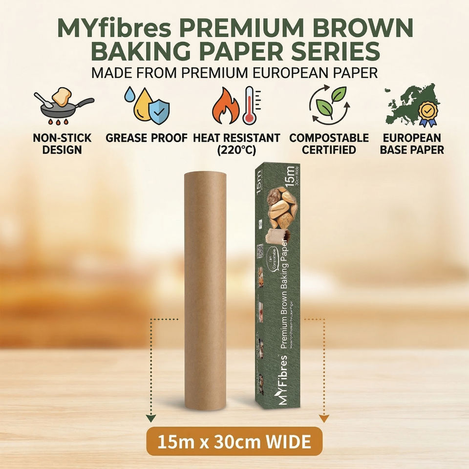 กระดาษรองอบยุโรปแบบม้วน 30 ซม. x 15 ม. เกรดอาหาร ทนความร้อน เป็นมิตรกับสิ่งแวดล้อม