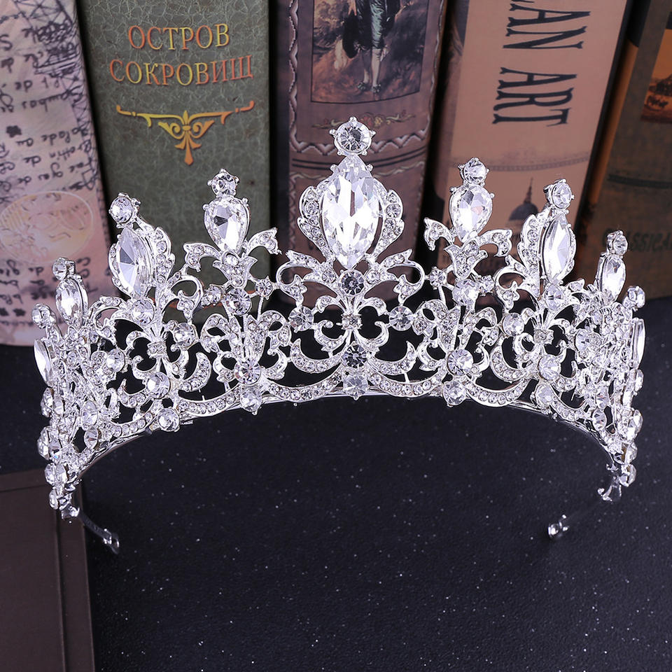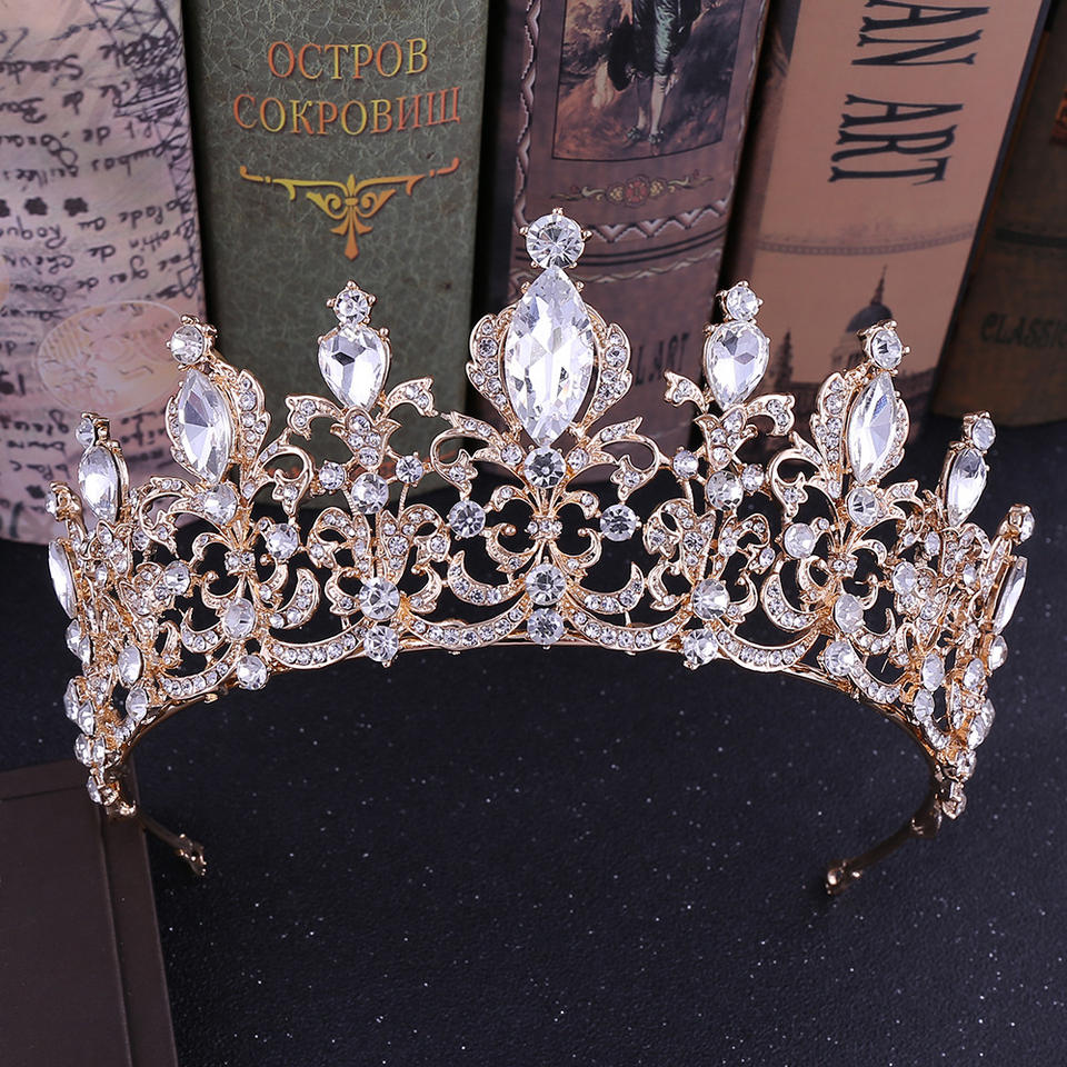 เครื่องประดับผมมงกุฎคริสตัลบาร็อคแบบชาวยุโรปสำหรับเจ้าสาวใหม่ชุดแต่งงานประดับพลอยเทียมและตกแต่งครบรอบปีสำหรับเด็กผู้หญิง