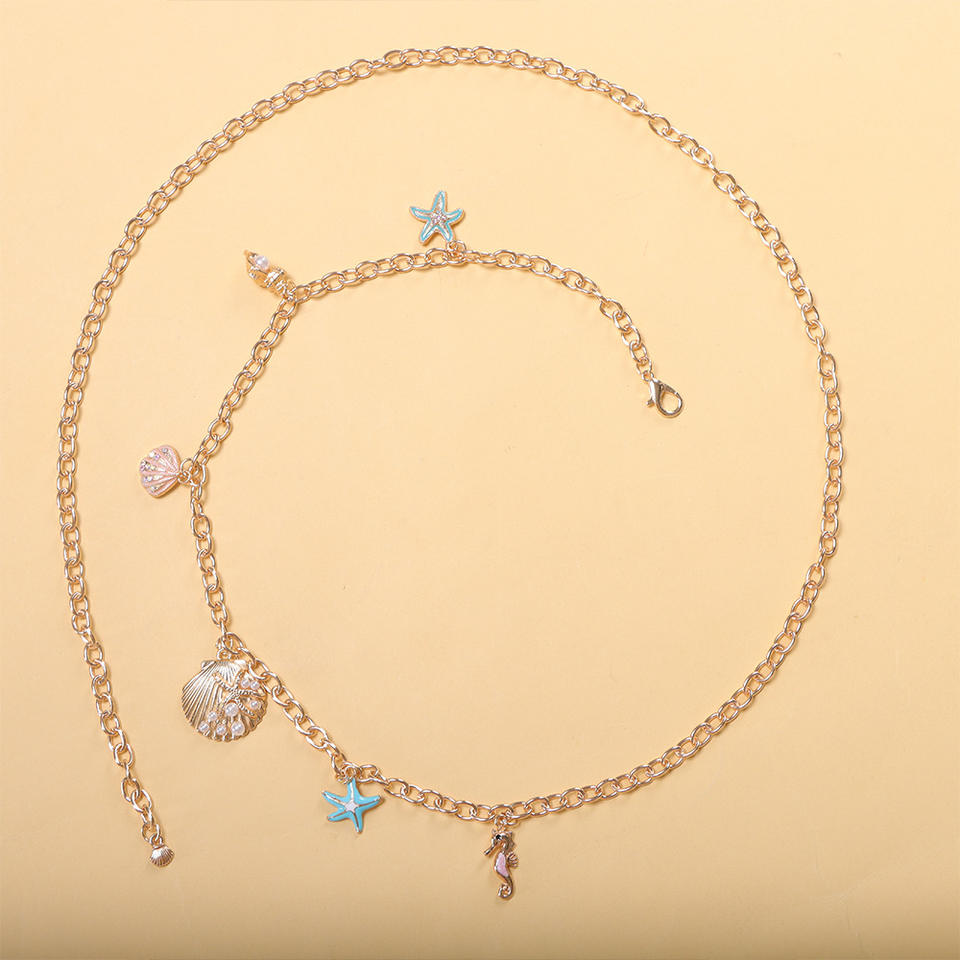 Single-layer seashell starfish waist chain with gold seashell arm ring