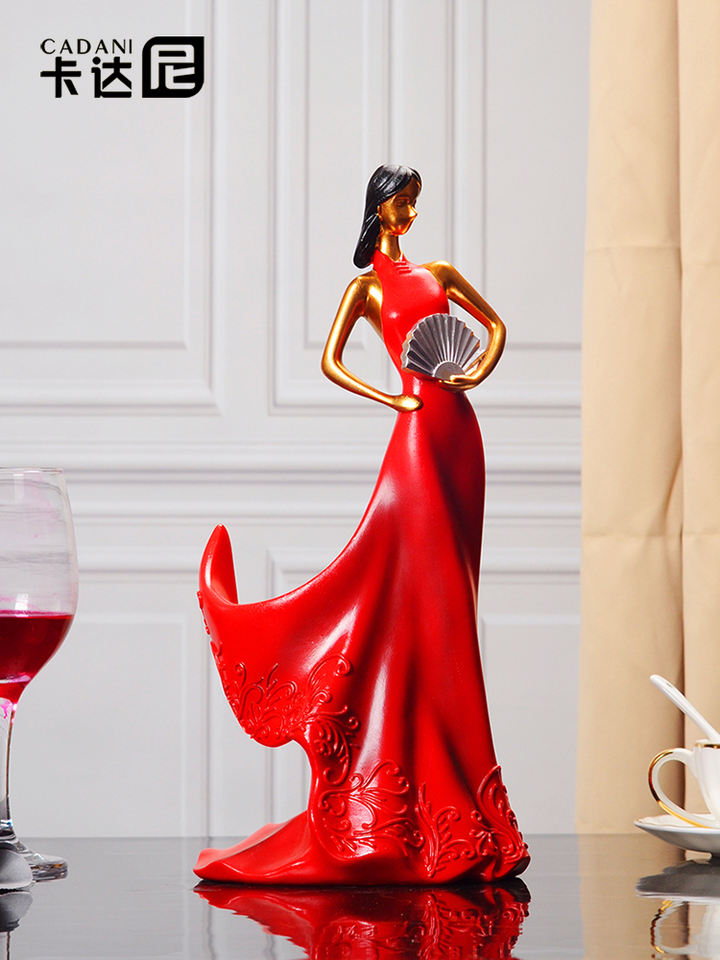 งานฝีมือเรซินเก๋ไก๋แบบชาวยุโรปชั้นวางไวน์ผู้หญิงสวยประติมากรรมจีนสำหรับห้องนั่งเล่นบ้านตู้ทีวีตกแต่งใหม่
