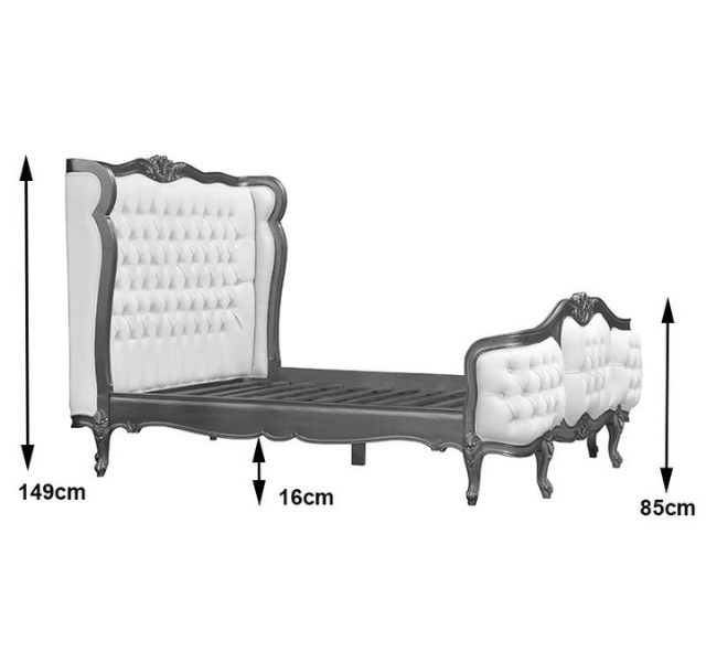 เตียงคิงไซส์สไตล์ยุโรปคลาสสิกสีขาวหุ้มเบาะ พร้อมโครงไม้มะฮอกกานีแท้แกะสลักด้วยมือเคลือบทอง ประกอบสำเร็จแล้ว