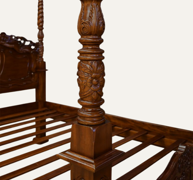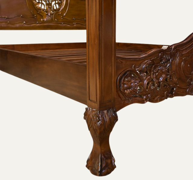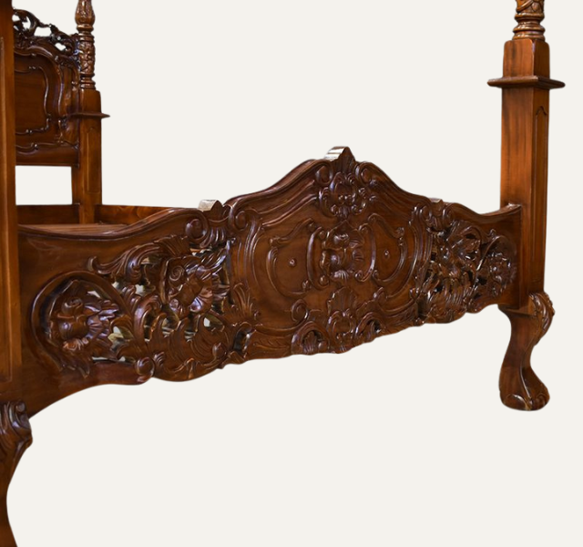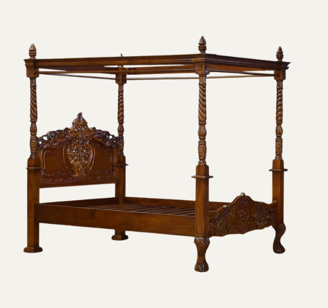 เตียงนอนสี่เสาทรงคลาสสิกยุโรปแกะสลักด้วยมือจากไม้มะฮอกกานีแท้สำหรับห้องนอนสุดหรู