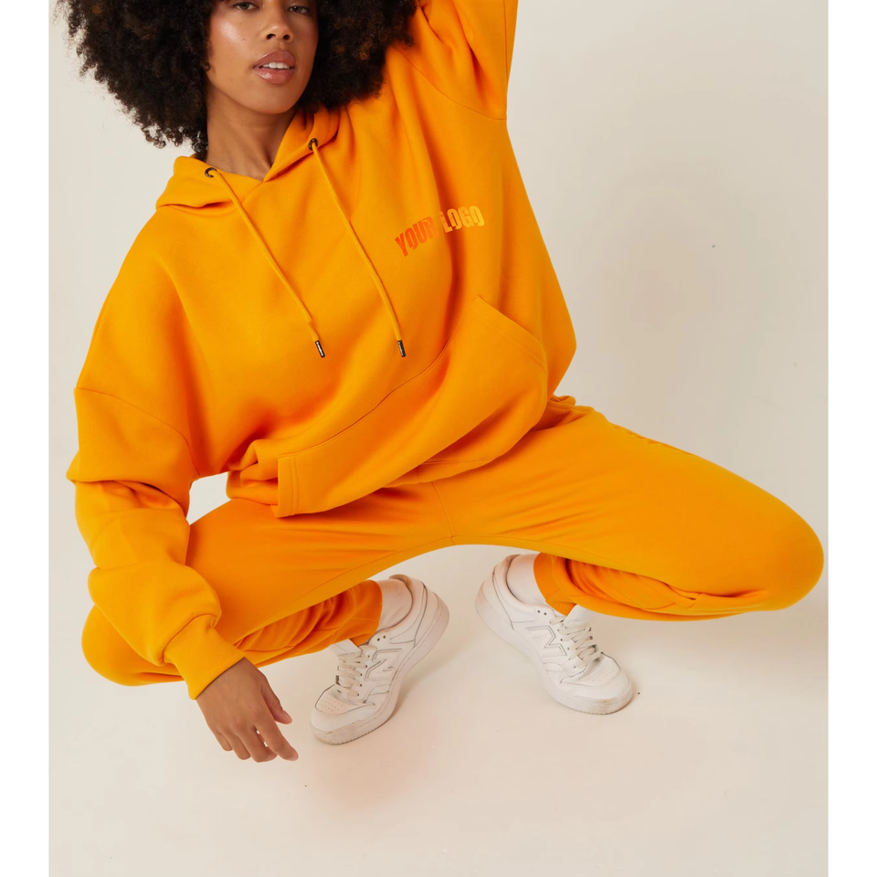ชุดเซ็ตสองชิ้นสไตล์ยุโรปสำหรับผู้หญิง เสื้อฮู้ดทรงบานเอวสูงสำหรับฤดูหนาว ชุดลำลองสไตล์สปอร์ต ทรงปกติ ผ้าฝ้าย 100%