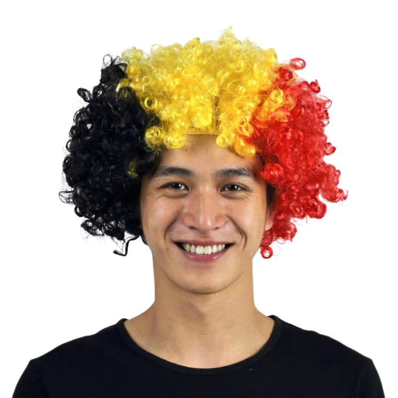 วิกผมสีธงชาติยุโรปสำหรับแฟนบอล งานปาร์ตี้ธีมกีฬา ทรงผมฟูฟ่อง อุปกรณ์สำหรับผู้ใหญ่ งานคาร์นิวัล ที่ครอบผมแบบระเบิด