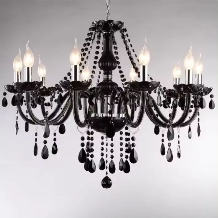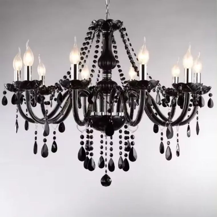 European Decorative Lighting Hotel 4 Tier Black Smoke Crystal Glass Arm Nordic Style Chandelier
