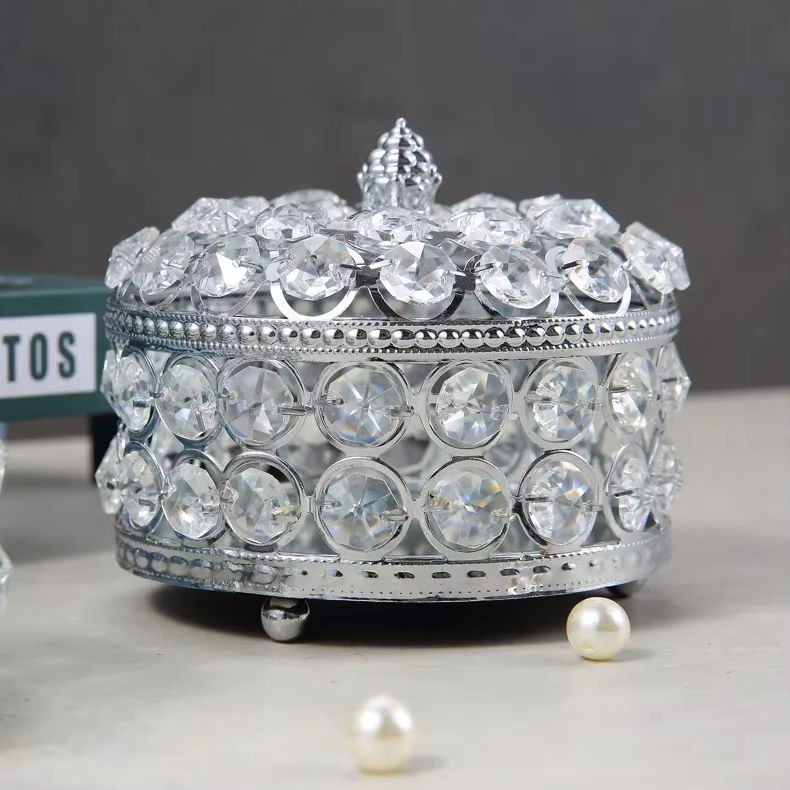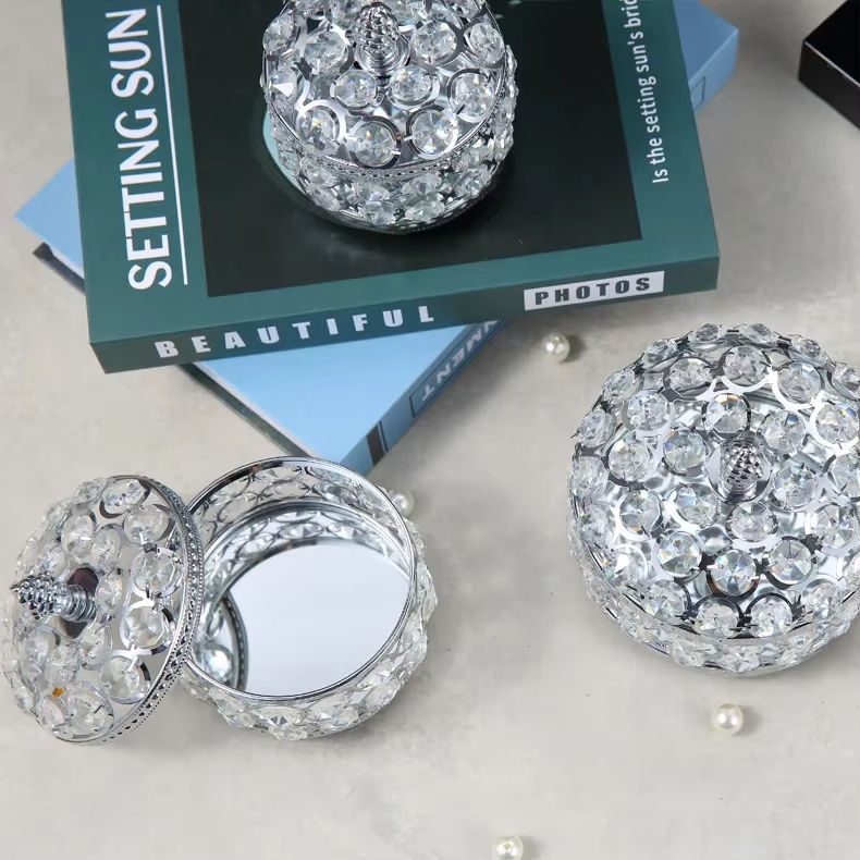 กล่องเครื่องประดับคริสตัลสุดสร้างสรรค์สไตล์ยุโรปที่เก็บแหวนทำจากโลหะชั้นดีใหม่สำหรับลูกปัดมีขนาดกลางและขนาดเล็ก