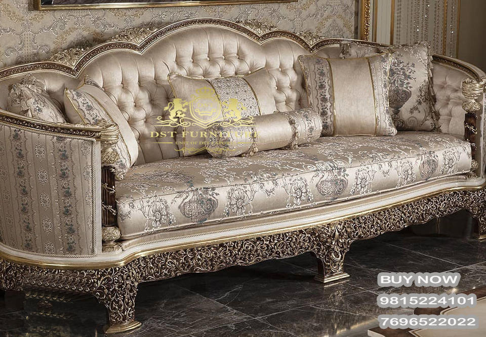 European Finish Hand Carved Living Room Sofa Set Royal Wooden Sofa Set Design for Living Room Luxury Wood Crafted Living Sofa