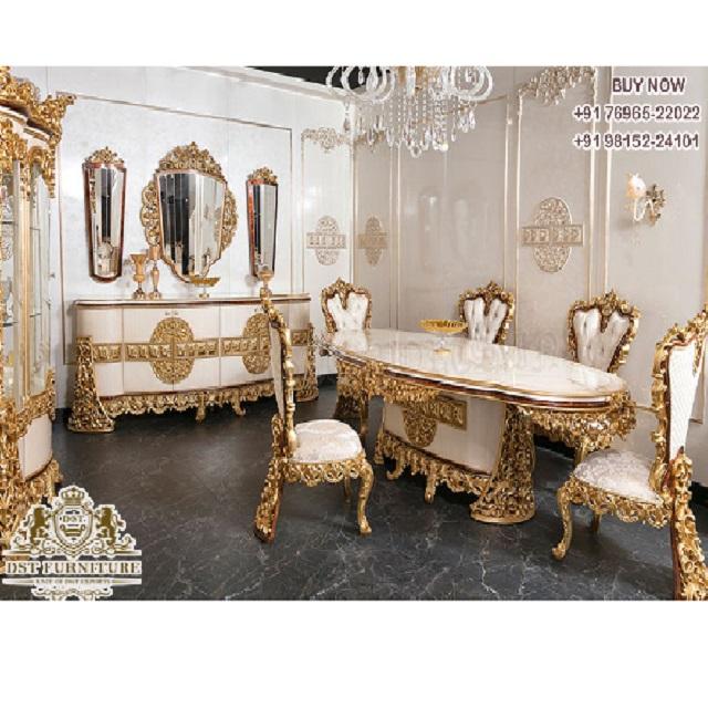 European Gold Polished 6 Seater Dining Table SetProduct name