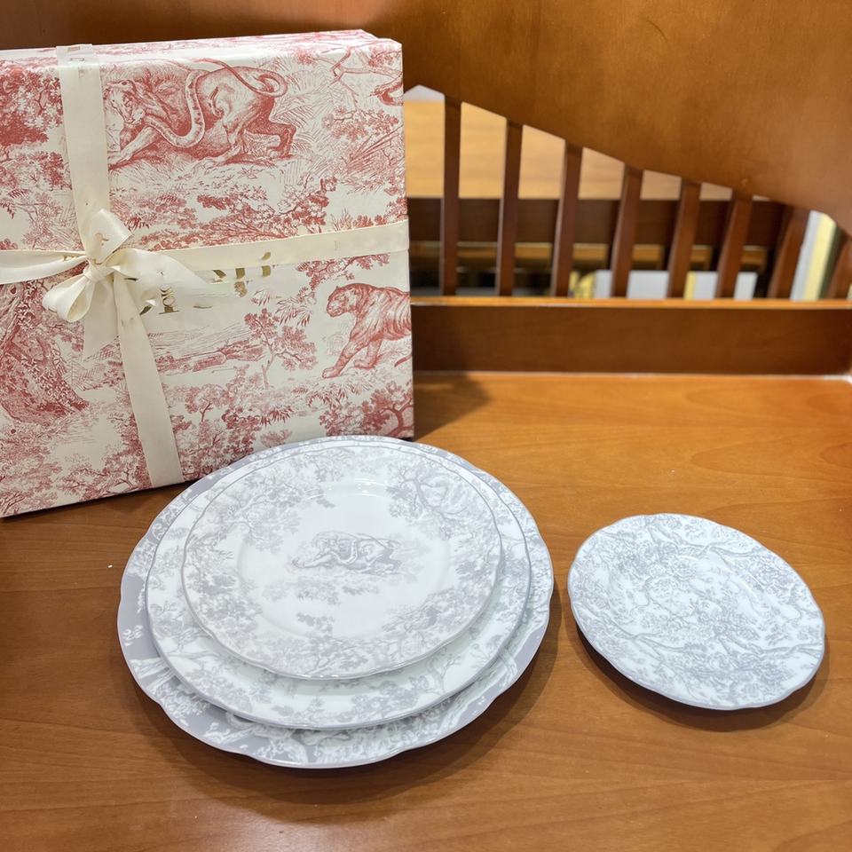 ชุดเซ็ทอาหารลายป่าสีเทาสไตล์ยุโรปชุดรับประทานอาหารค่ำสุดหรูชุดจานและจานสไตล์จีนแบบพรีเมี่ยม