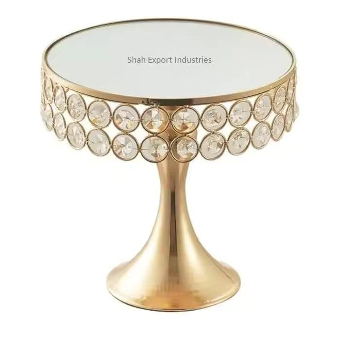 แท่นวางเค้กคริสตัลทรงกลมเคลือบทองสไตล์ยุโรปหรูหราตกแต่งโต๊ะเค้กผลไม้ของหวานสำหรับทำเค้ก