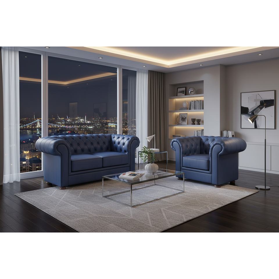 โซฟาเชสเตอร์ฟิลด์ 2 ที่นั่ง หุ้มเบาะสั่งทำพิเศษจากผู้ผลิตยุโรป สำหรับเฟอร์นิเจอร์เชิงพาณิชย์ ผลิตภัณฑ์ B2B