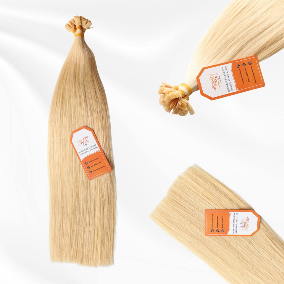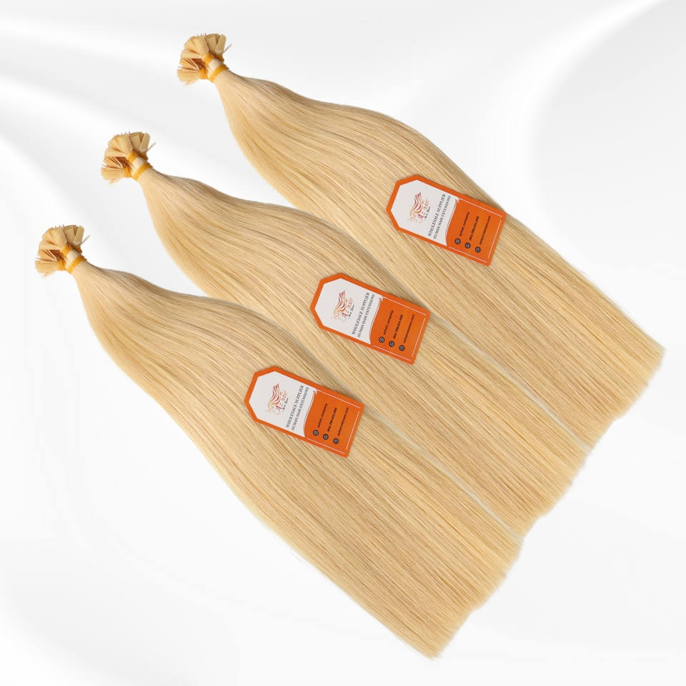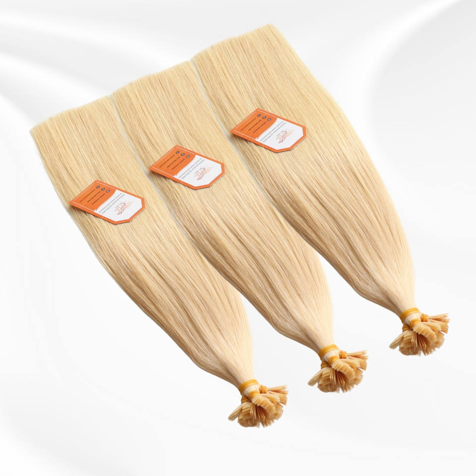 ผมต่อแบบปลายแบนของคน100% ผมดิบมัดสองชั้นตลาดยุโรป