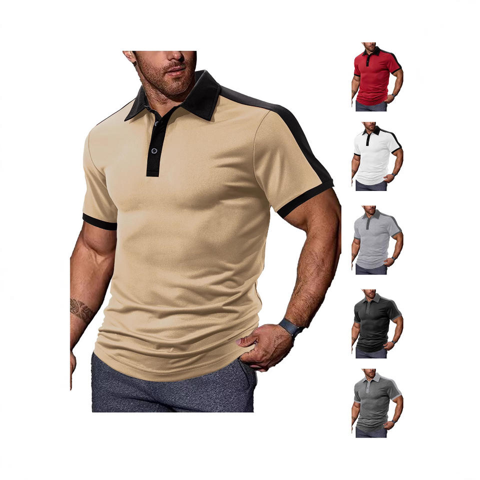 เสื้อโปโลผู้ชายสไตล์ยุโรป สีตัดต่อ ขาว-ดำ แขนสั้น ผ้าโพลีเอสเตอร์ คอปก ทรงสปอร์ต ใส่สบาย รุ่น DF-104