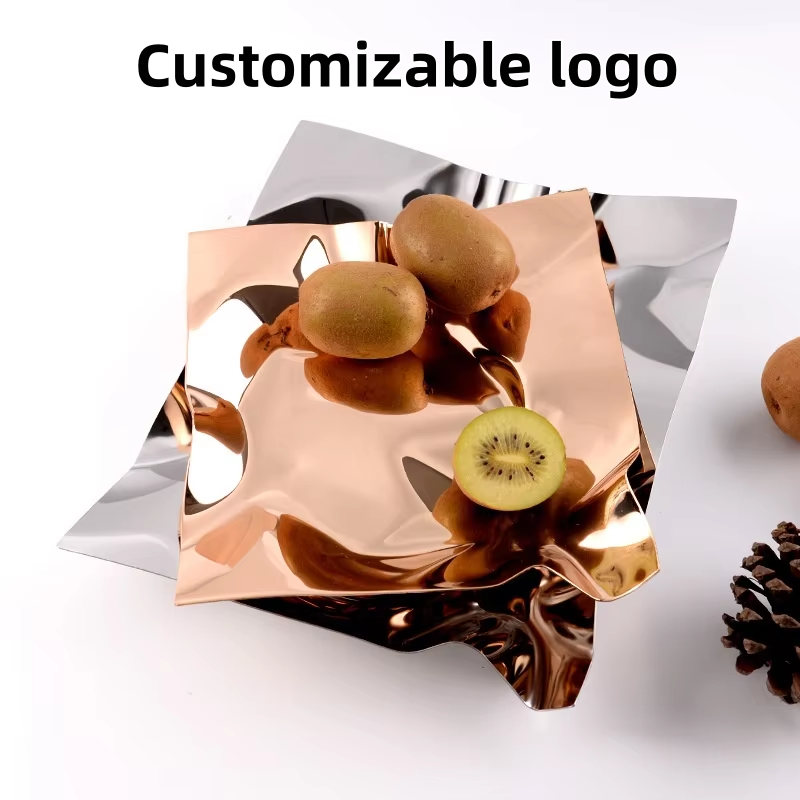 จานผลไม้สแตนเลสสตีลคุณภาพสูงสไตล์ยุโรปทันสมัย ลายคลื่นสร้างสรรค์ สำหรับโต๊ะกาแฟ ใช้ในห้องนั่งเล่น ใช้แล้วทิ้งได้