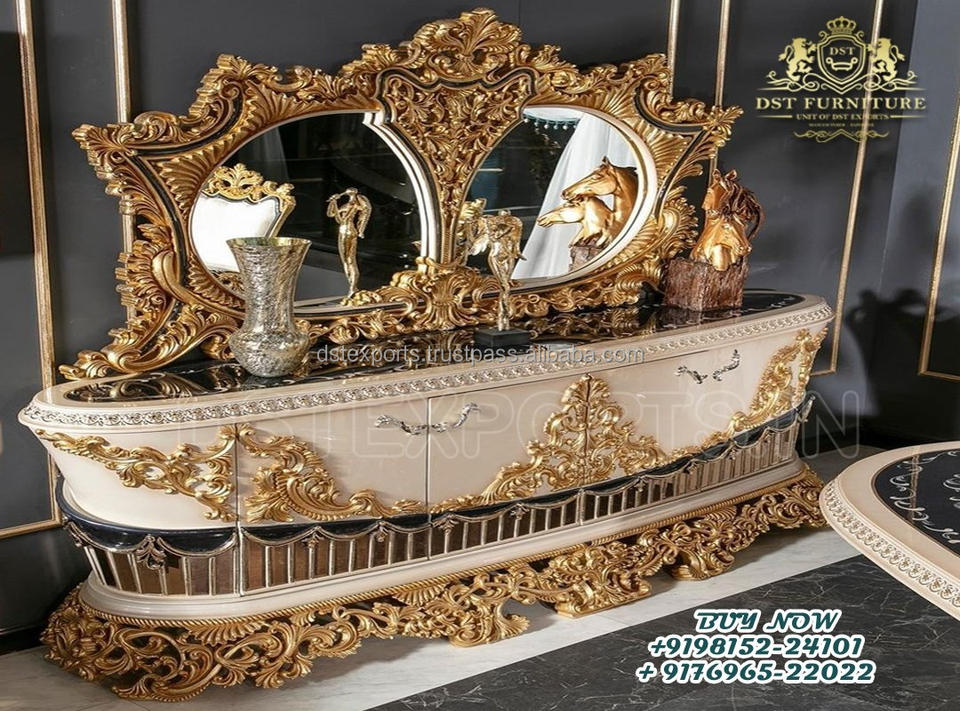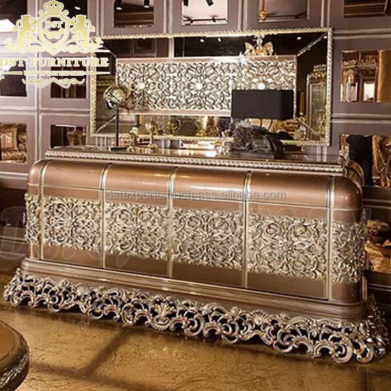 คอนโซลรับประทานอาหารสุดหรูทันสมัยสไตล์ยุโรปทำจากไม้สักเนื้อแข็งแกะสลักด้วยมือปรับขนาดและสีได้เฟอร์นิเจอร์บ้านที่ทนทาน