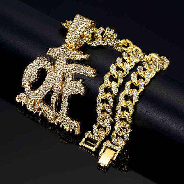 จี้เพชรทรงตัวอักษร OTF สไตล์ยุโรป เพชรเพาะเลี้ยง สร้อยคิวบันโรสโกลด์ สร้อยคอฮิปฮอป จี้ห้อยประดับสวยงาม