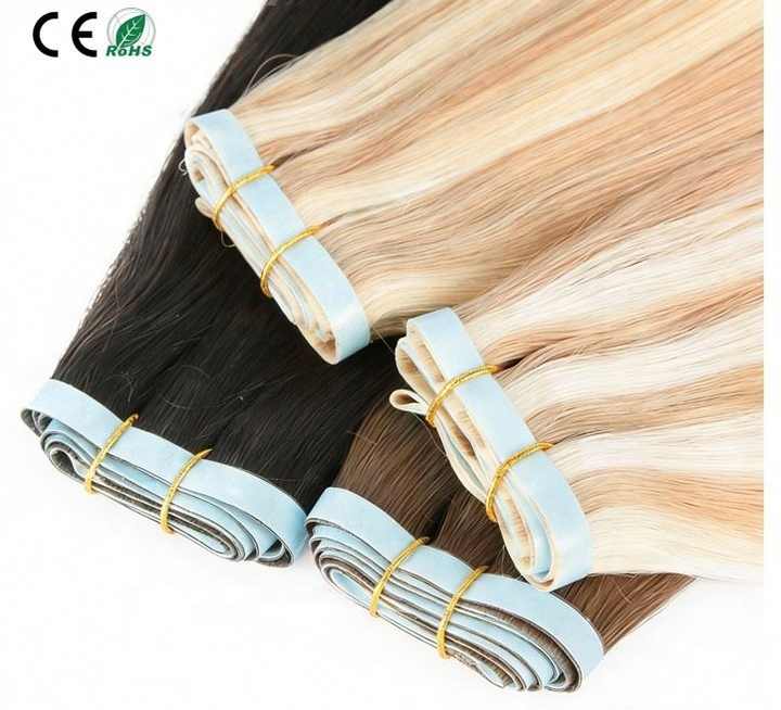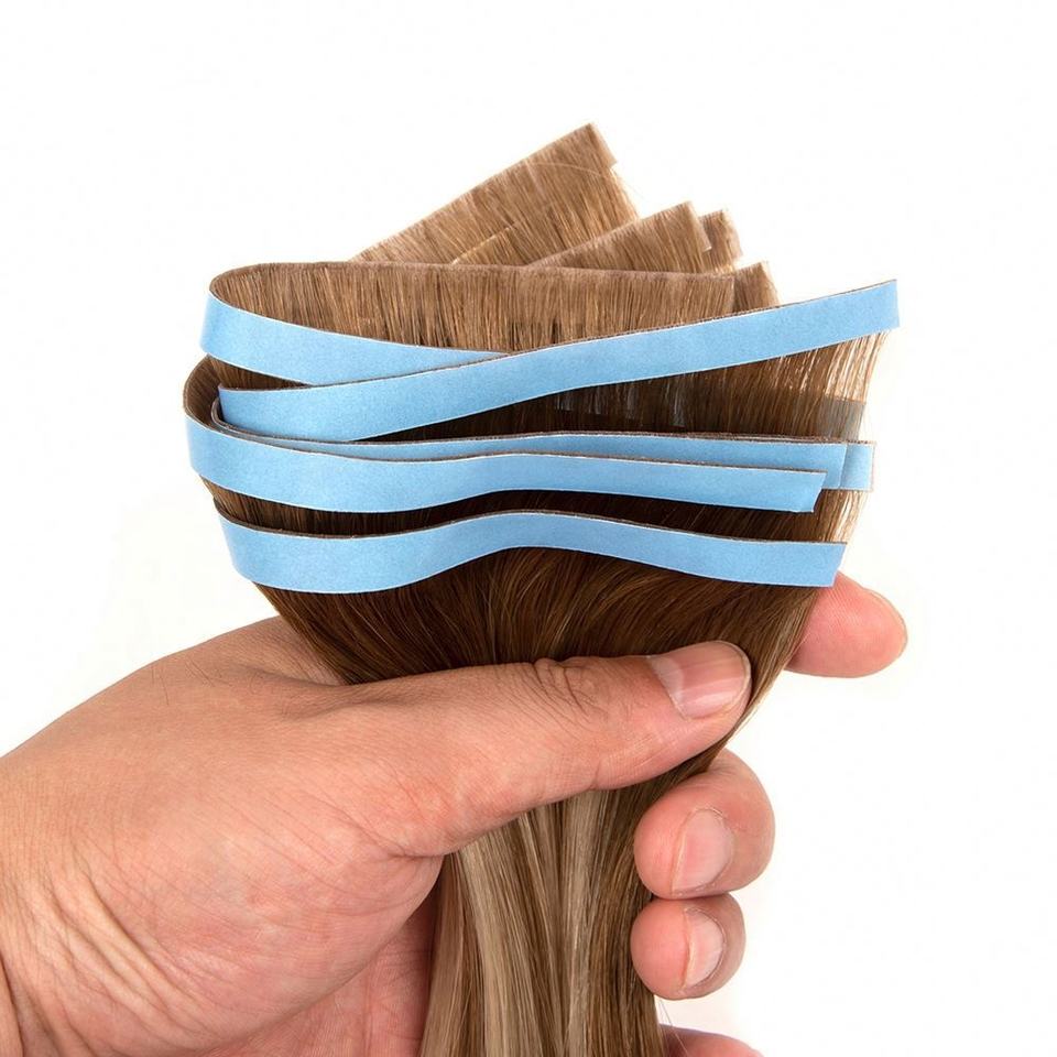 ผมต่อแท้แบบยุโรป คุณภาพสูง มองไม่เห็นรอยต่อ แบบเทปสองชั้น ย้อมสีอ่อน เนียนตรง