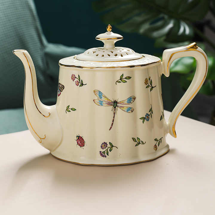 ชุดกาน้ำชาและกาแฟเซรามิกสไตล์ยุโรปย้อนยุค ลายผีเสื้อและแมลงปอสุดหรู ดีไซน์ทันสมัยสำหรับเครื่องดื่ม