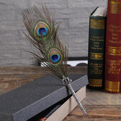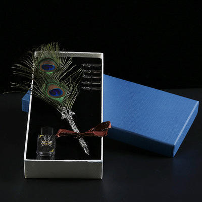 ชุดของขวัญปากกาจุ่มแบบยุโรปย้อนยุค ดีไซน์ขนนกยูง พร้อมหัวเขียนขนาด 0.5 มม. ทำจากวัสดุโลหะ