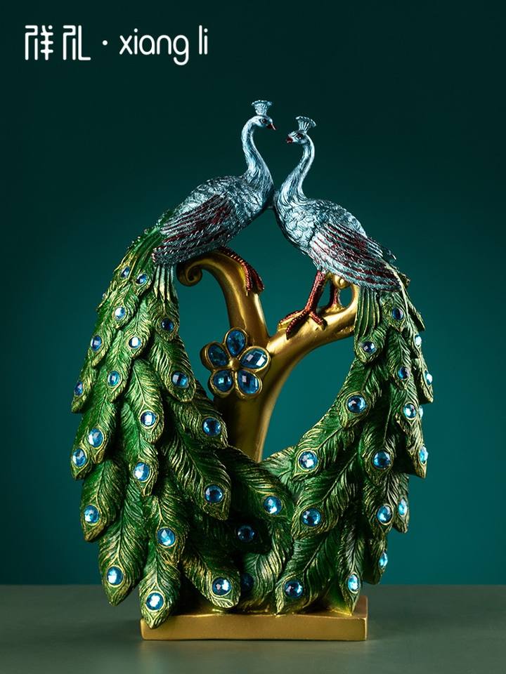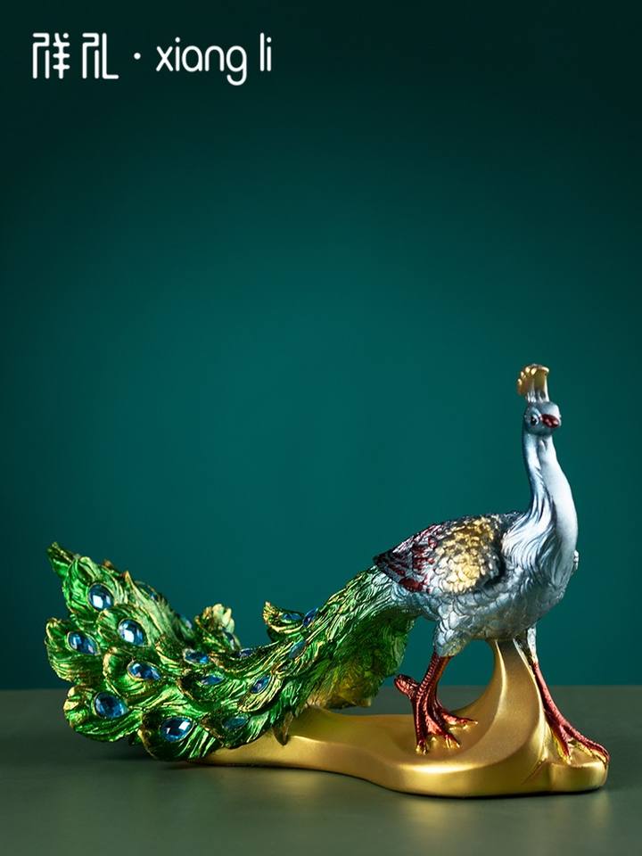 European Retro TV Cabinet Ornament Durable Modern Home Wine Cabinet Decoration Creative Porch Folk Art PEACOCK Resin Crafts