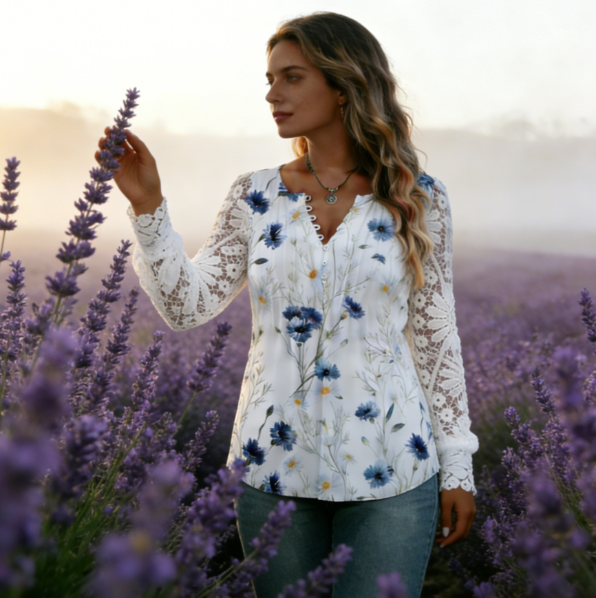 เสื้อลูกไม้เซ็กซี่สไตล์ยุโรป แขนยาว ไซส์ใหญ่ สำหรับผู้หญิง - ทรงหลวม ลายดอกไม้ ติดกระดุม เสื้อเบลาส์สำหรับฤดูร้อนและฤดูใบไม้ร่วง