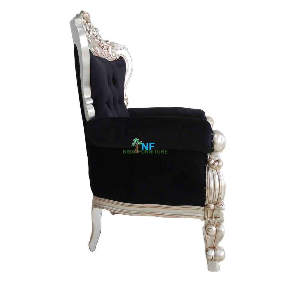 โซฟาแบบแบ่งส่วนที่นั่งเดียวทำจากไม้มะฮอกกานีแข็งสไตล์ยุโรปสีเงินสีดำกำมะหยี่ฝรั่งเศส