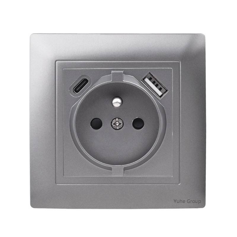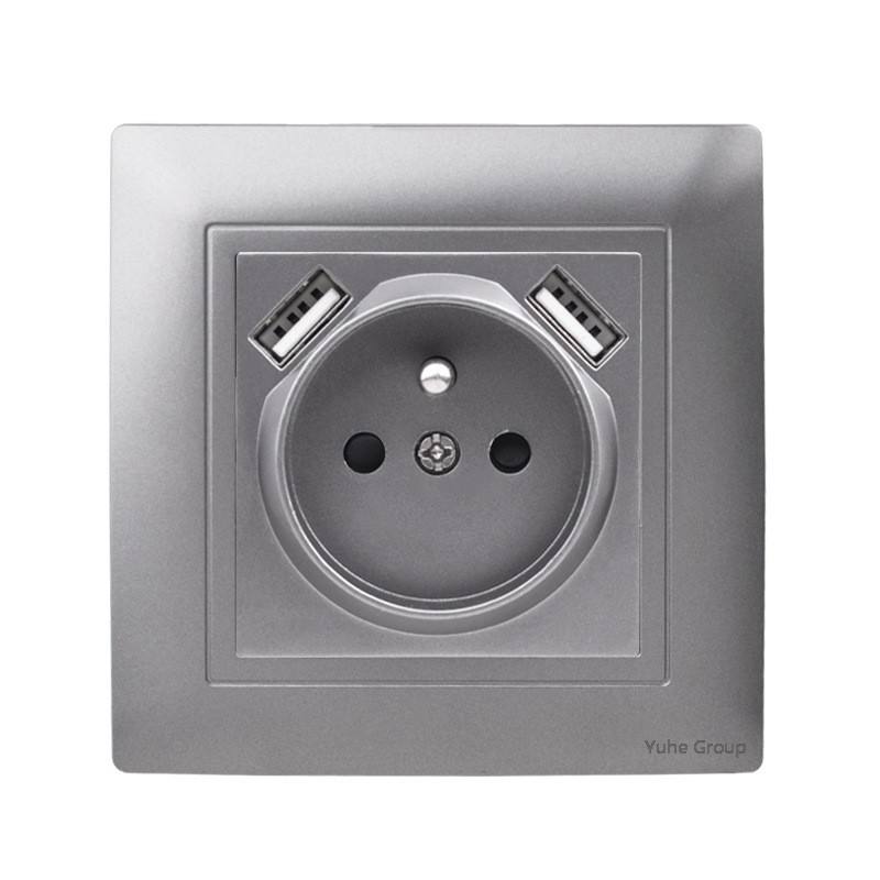 เต้ารับติดผนังมาตรฐานยุโรปแบบสัมผัส 2 ช่อง แบบฝรั่งเศส