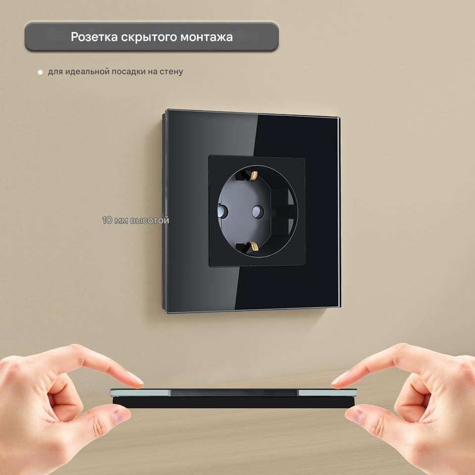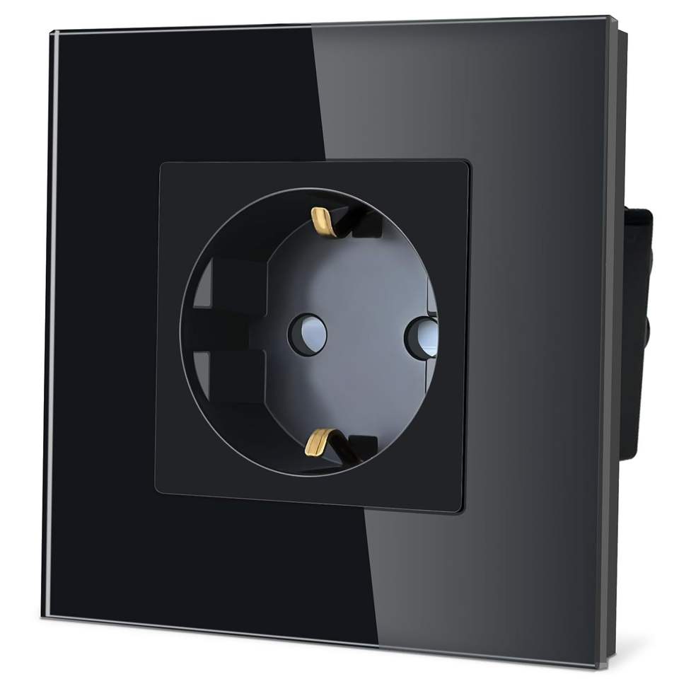 เต้ารับไฟฟ้าแบบยุโรปสีดำ แผงกระจกนิรภัย 16A พร้อมฝาปิดนิรภัยสำหรับเด็ก สำหรับใช้ภายในอาคาร