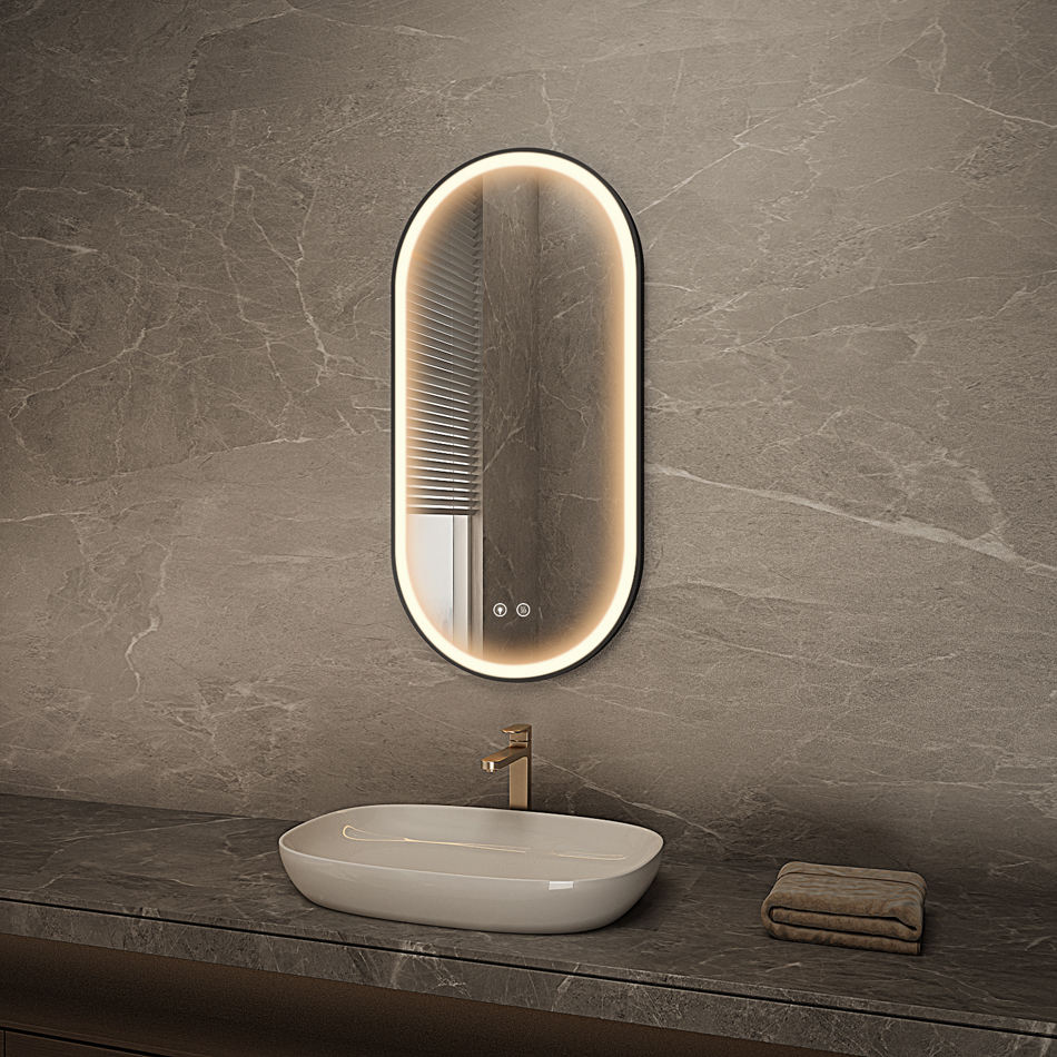 กระจกห้องน้ำไฟ LED แบบเดี่ยวมาตรฐานยุโรปสำหรับโรงแรมห้องน้ำติดผนังดีไซน์สว่างอัจฉริยะ