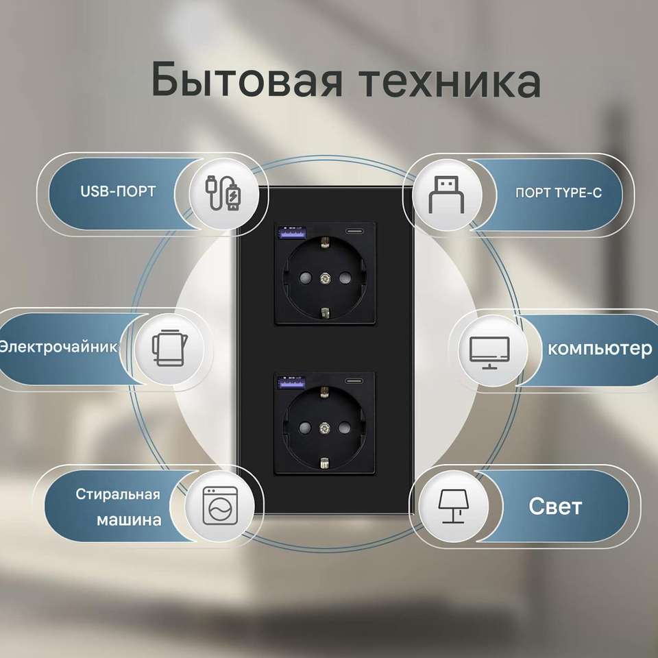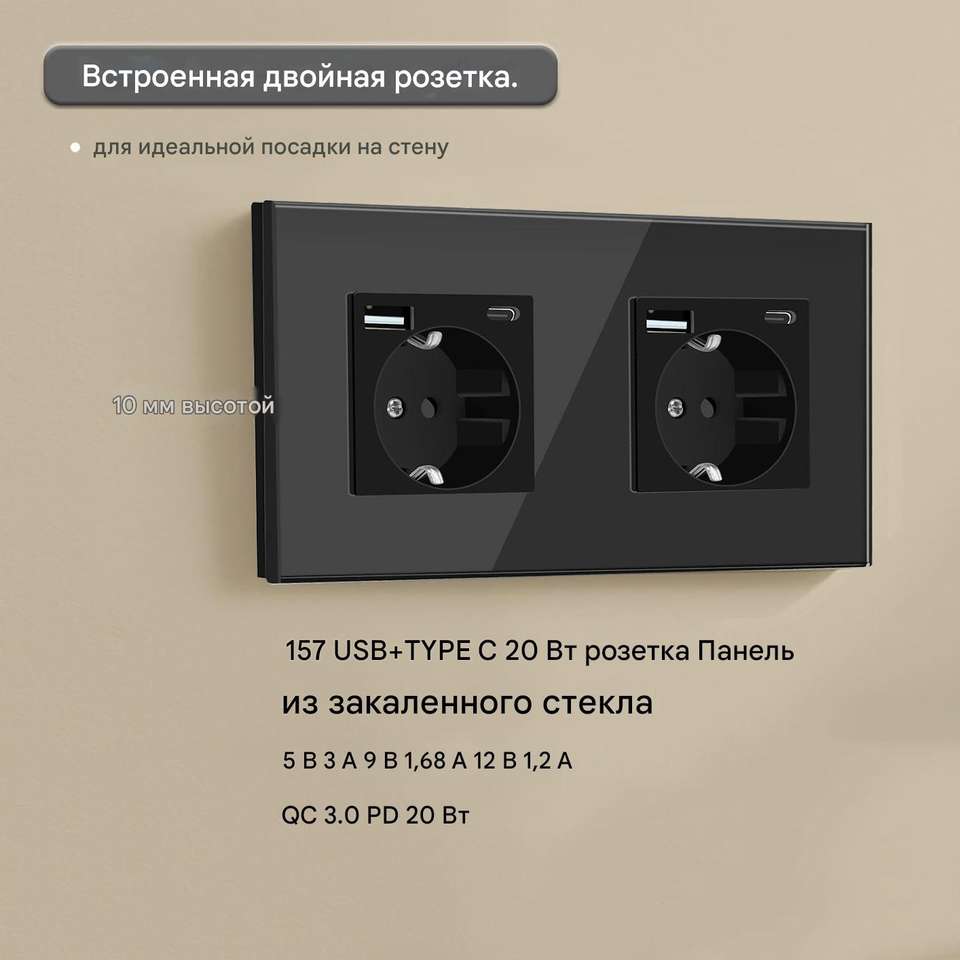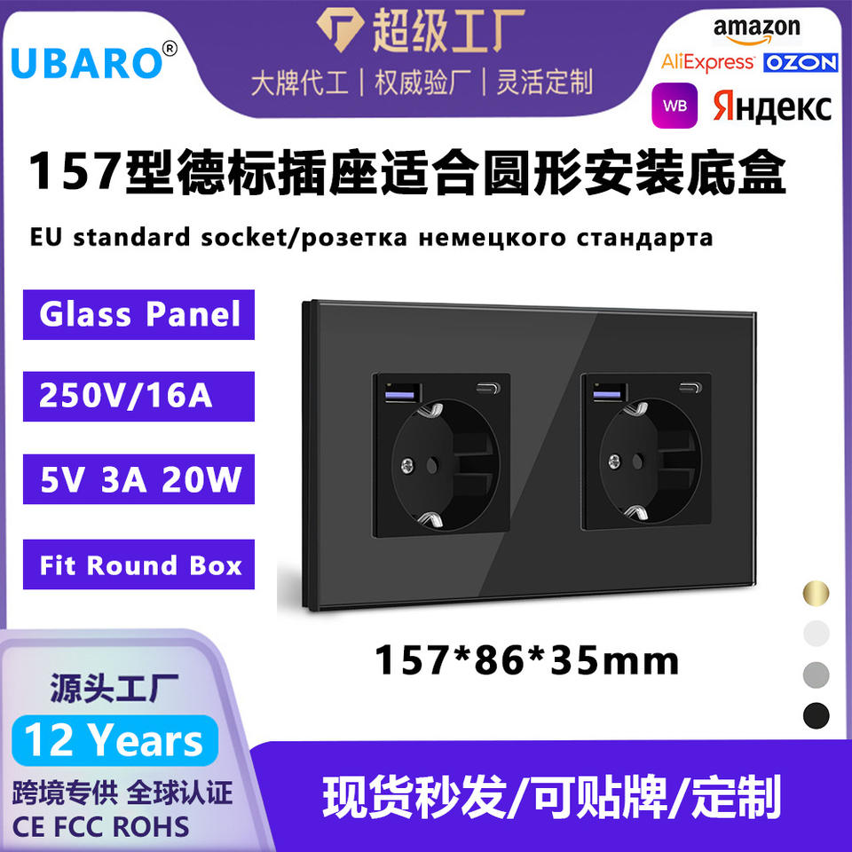 เต้ารับติดผนังมาตรฐานยุโรปพร้อมแผงกระจก AC220V 16A ปลั๊ก EU PD ชาร์จเร็ว5V 3A การติดตั้งกล่องกลม