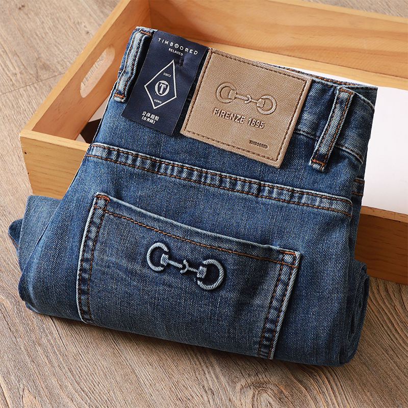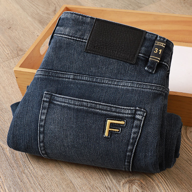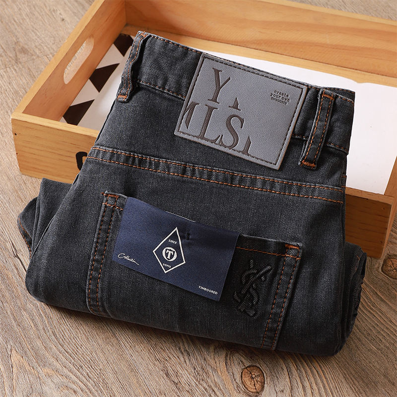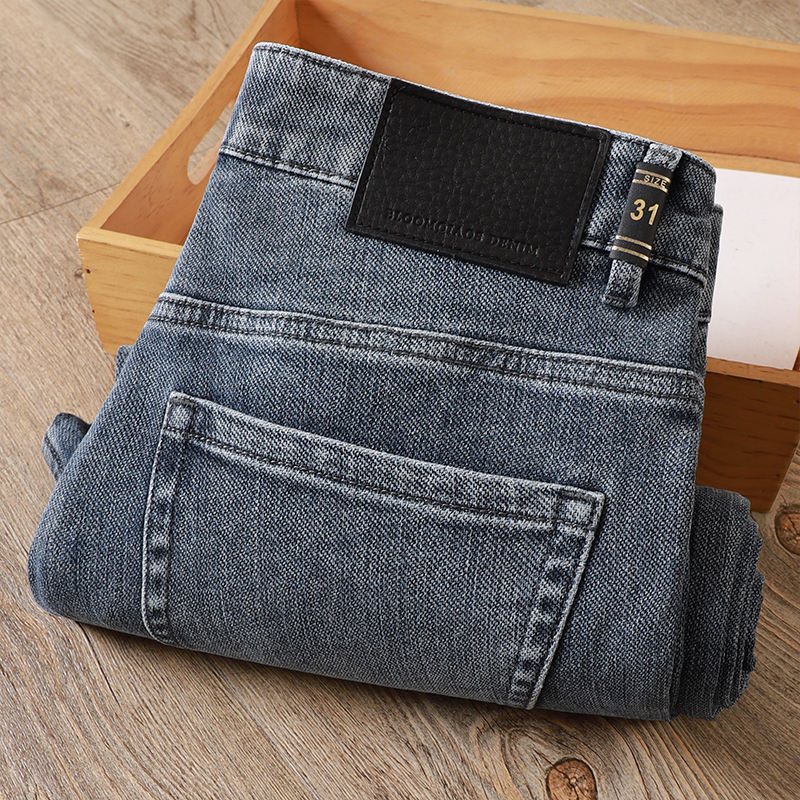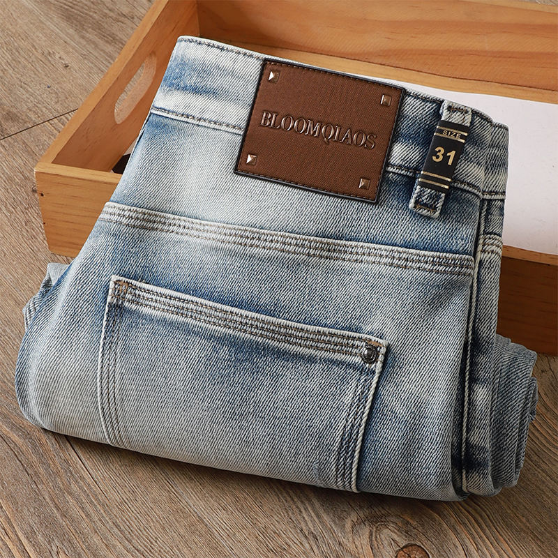 กางเกงยีนส์ขาตรงผู้ชายทรงตรงปลายสูงสำหรับฤดูใบไม้ร่วงฤดูหนาว