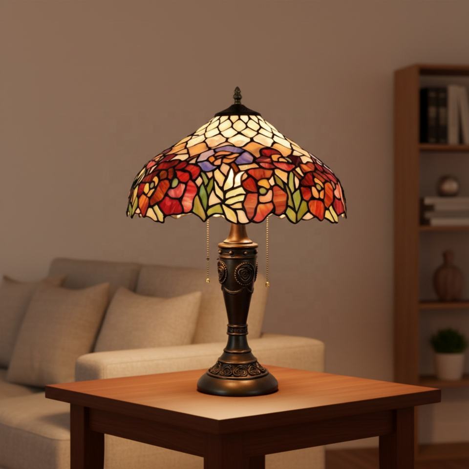 โต๊ะกระจกสีสไตล์ยุโรปขนาด 16 นิ้ว งานฝีมือทำมือ ลายเกล็ดปลา วัสดุเรซิ่น ไฟ LED DC ถนอมสายตา เหมาะสำหรับห้องนั่งเล่นและห้องนอน