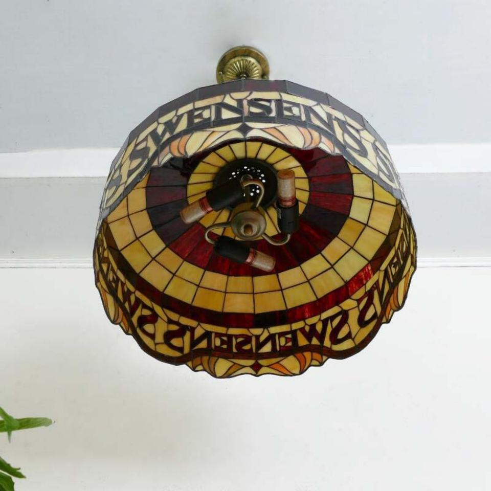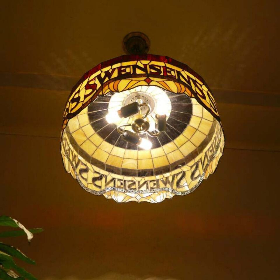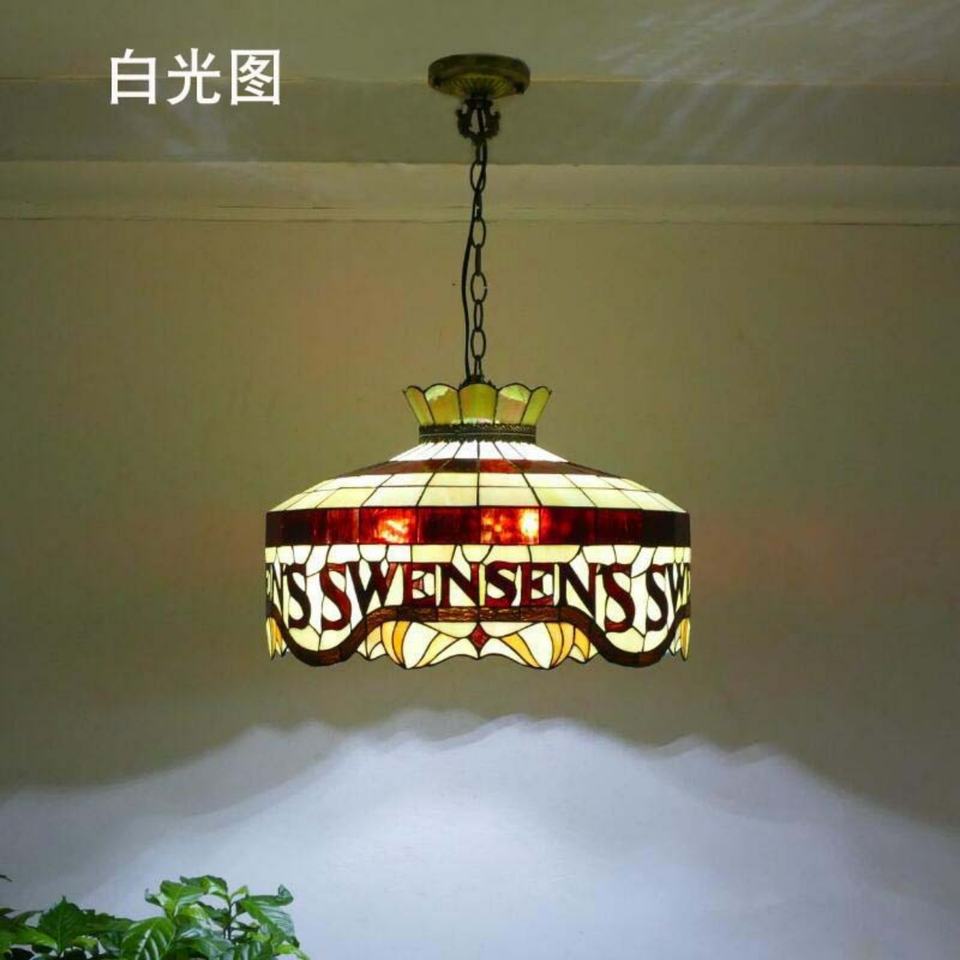 โคมไฟระย้าสไตล์ยุโรปขนาด 20 นิ้ว วินเทจ กระจกสีลายโบสถ์ ปรับความสูงได้ ไฟ LED ดีไซน์ผลไม้ เหมาะสำหรับห้องอาหารกลางร้านอาหาร