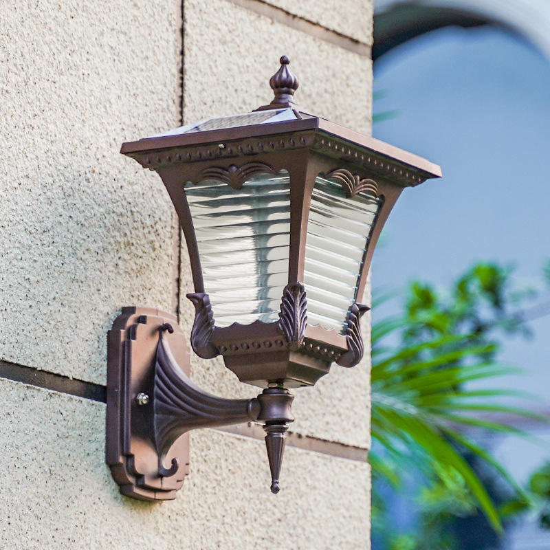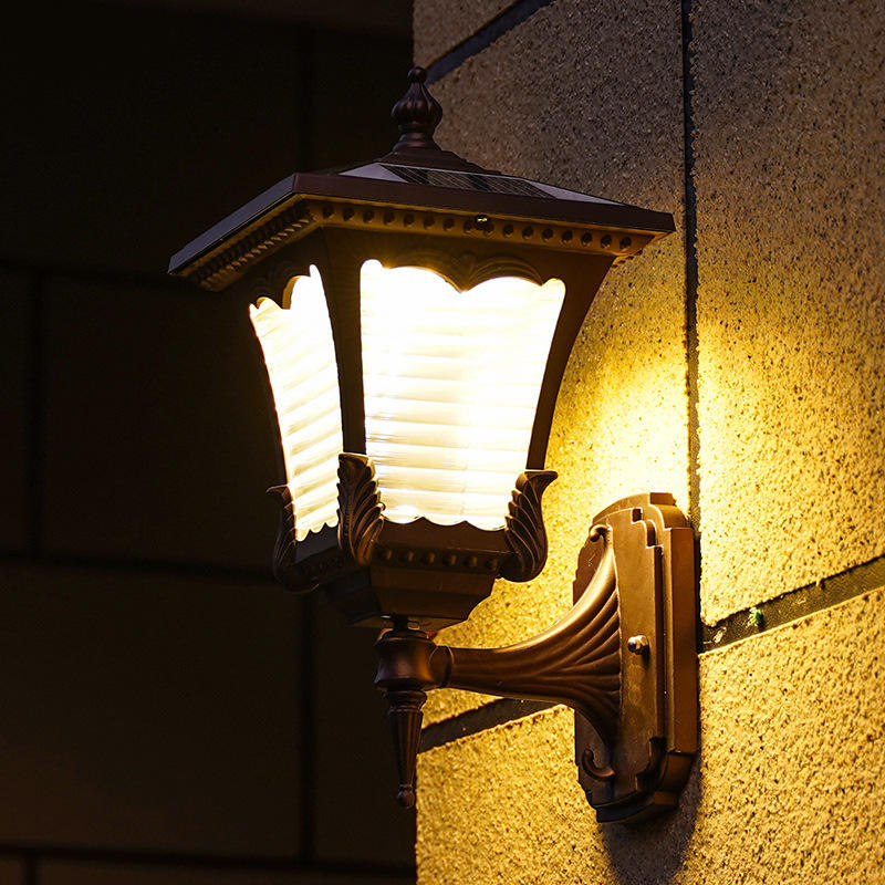 โคมไฟ LED พลังงานแสงอาทิตย์สไตล์ยุโรปโบราณโคมไฟติดผนังสวนกลางแจ้ง