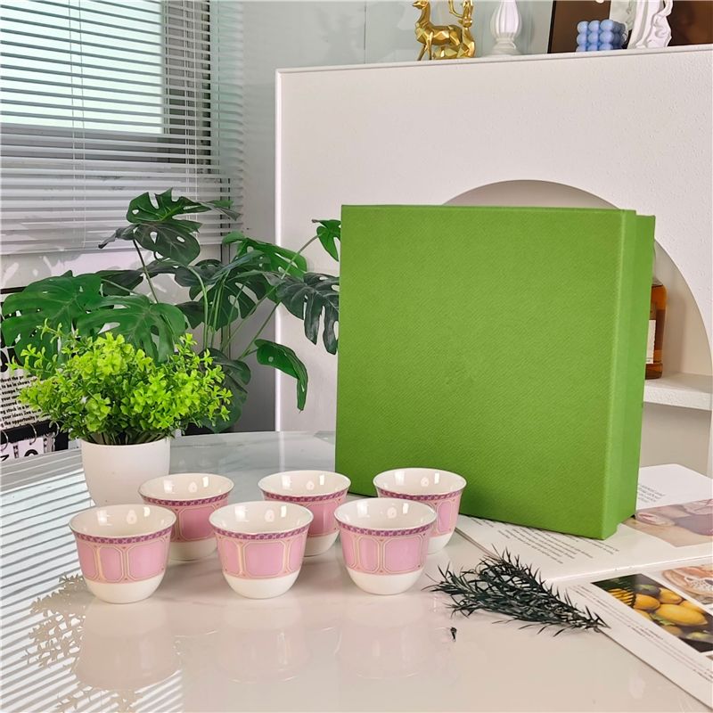 ชุดถ้วยชาเซรามิกสีชมพูสไตล์ยุโรปขายดี 6 ชิ้น ปลอดภัยสำหรับเครื่องล้างจาน พร้อมกล่องของขวัญ