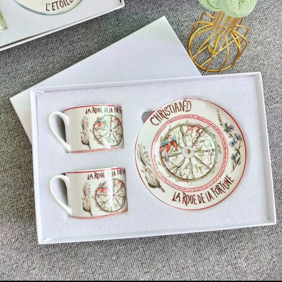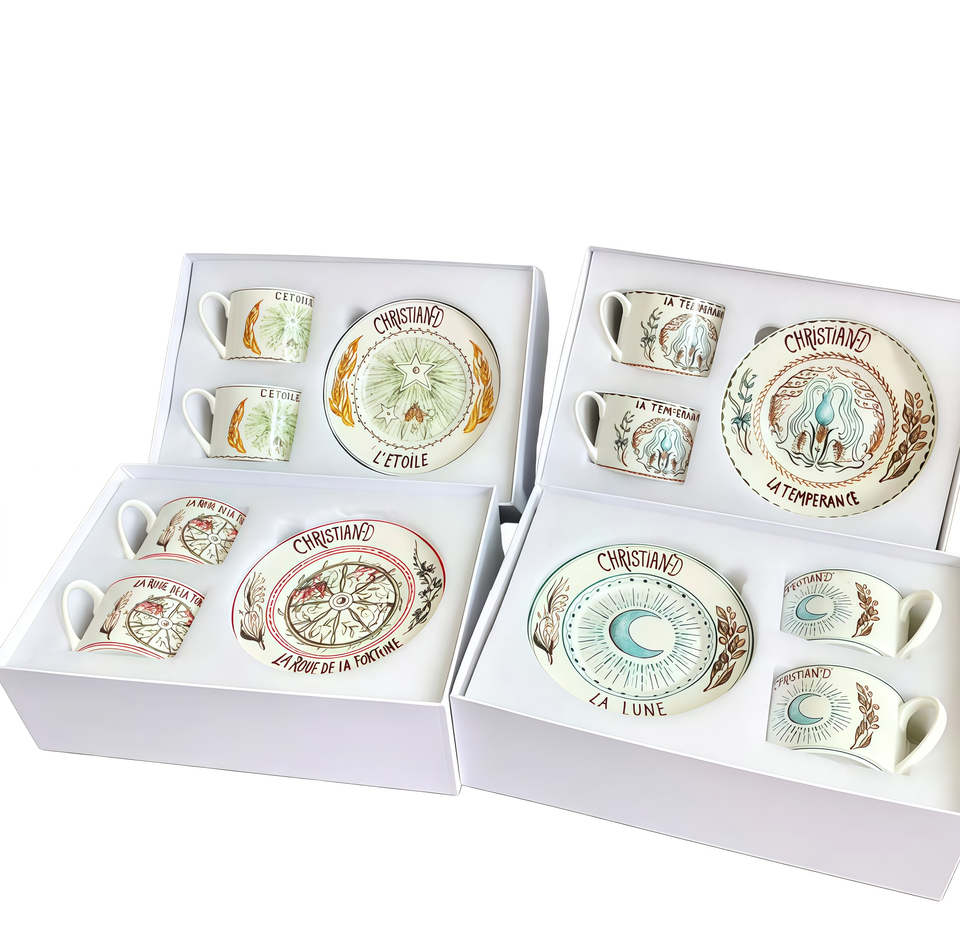 ชุดถ้วยกาแฟและจานรองลายไพ่ทาโรต์สไตล์ยุโรป ทำจากเซรามิกเนื้อละเอียด พร้อมกล่องของขวัญสุดหรูสำหรับชุดน้ำชายามบ่าย