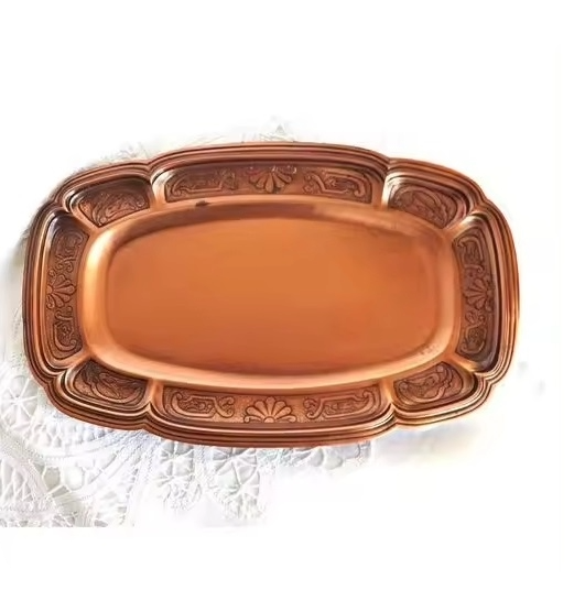 ถาดโลหะทองแดงสไตล์ยุโรป ถาดขนมปัง ถาดของหวาน ถาดโลหะสำหรับเดือนรอมฎอน ถาดเสิร์ฟกาแฟ ชา ผลไม้